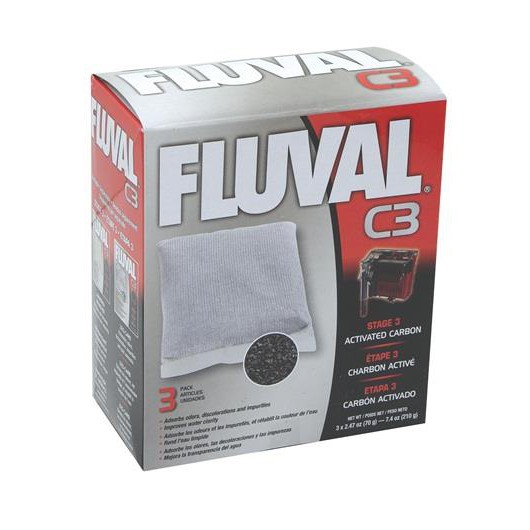 Fluval Carbon Filter Media, 3 count Fluval C3 Filter Media replacement media for the fluval c3 power filter. This is a combination of activated carbon and ammonia remover. biological filter media keeps aquarium clean and healthy, maintains good water quality, and keeps fish thriving. replacement filter media designed for use with the fluval c3 power filter. activated carbon, chemical filter media, improves water clarity by effectively. Fluval C3 Filter Media.